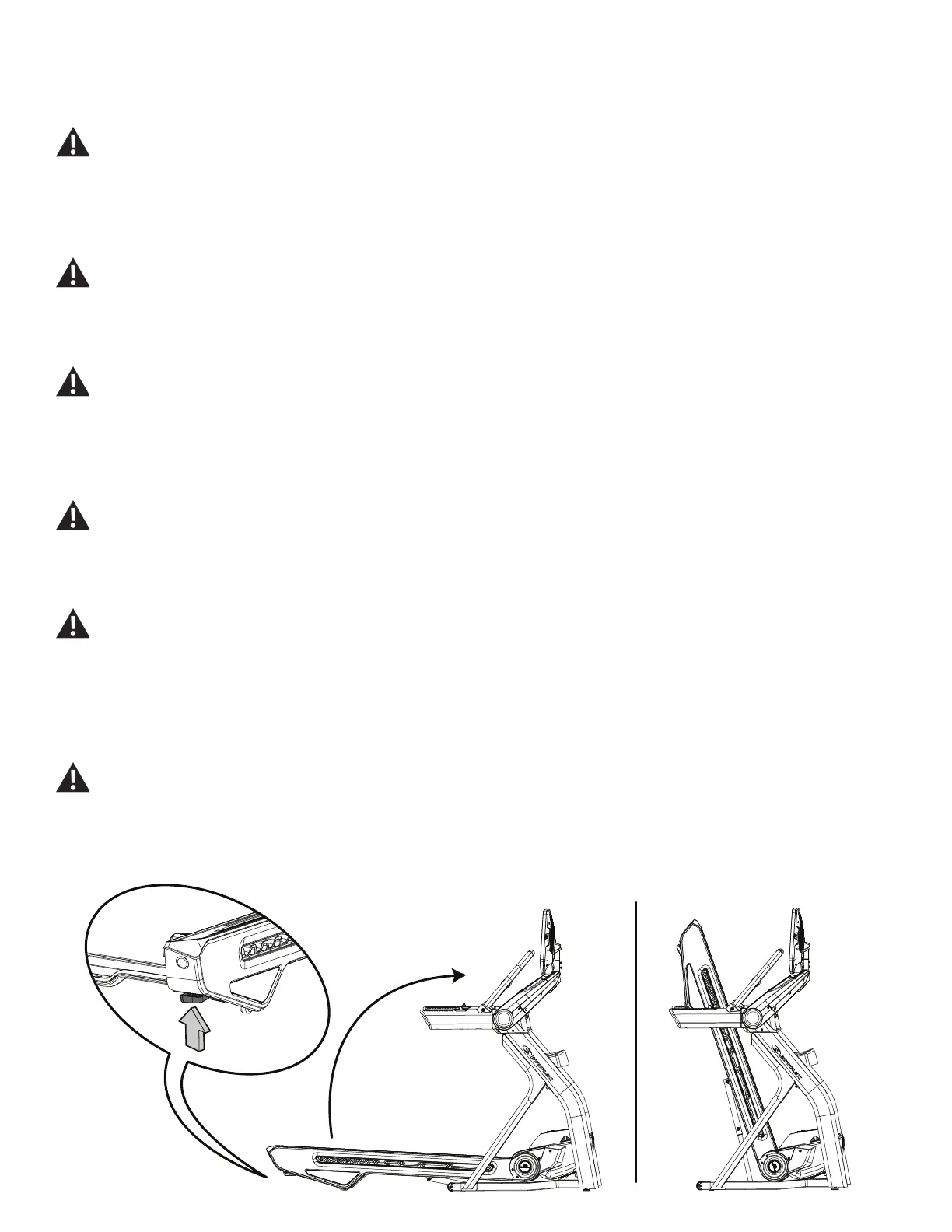 4. You must fold the treadmill before you move it. Never move the treadmill if it is not folded.