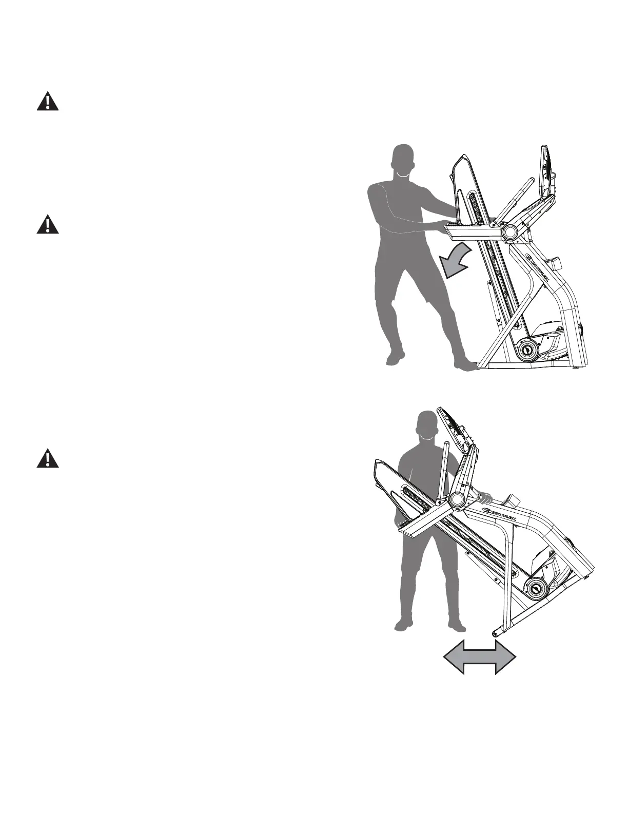 this, keep clear of movement path in case the treadmill lock is not properly engaged.