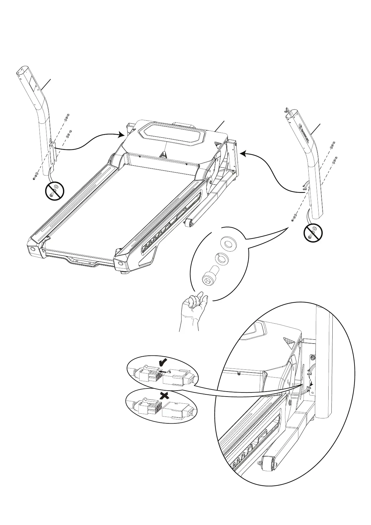 Bowflex Treadmill 22 - Attach the Uprights to the Base Assembly, and then Connect the Cables from the Base Assembly to the Right Upright
