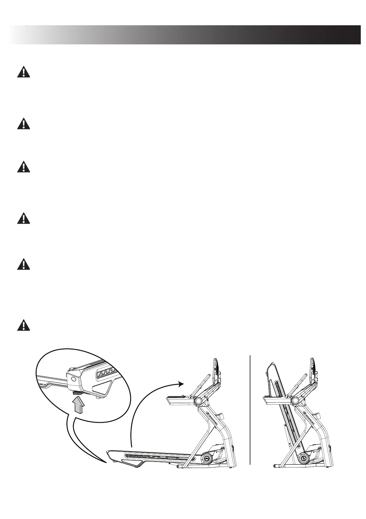 4. You must fold the treadmill before you move it. Never move the treadmill if it is not folded.