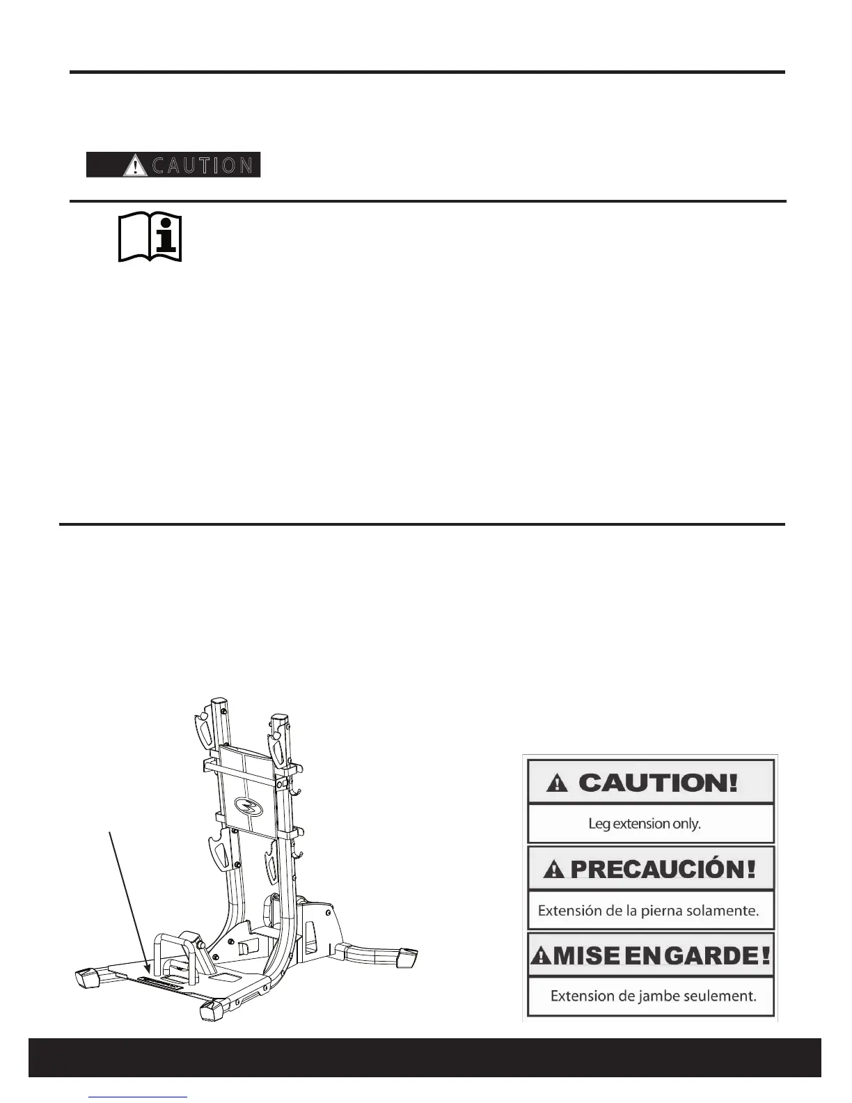 The following safety warnings are located in site specific areas on the Bowflex Ultimate