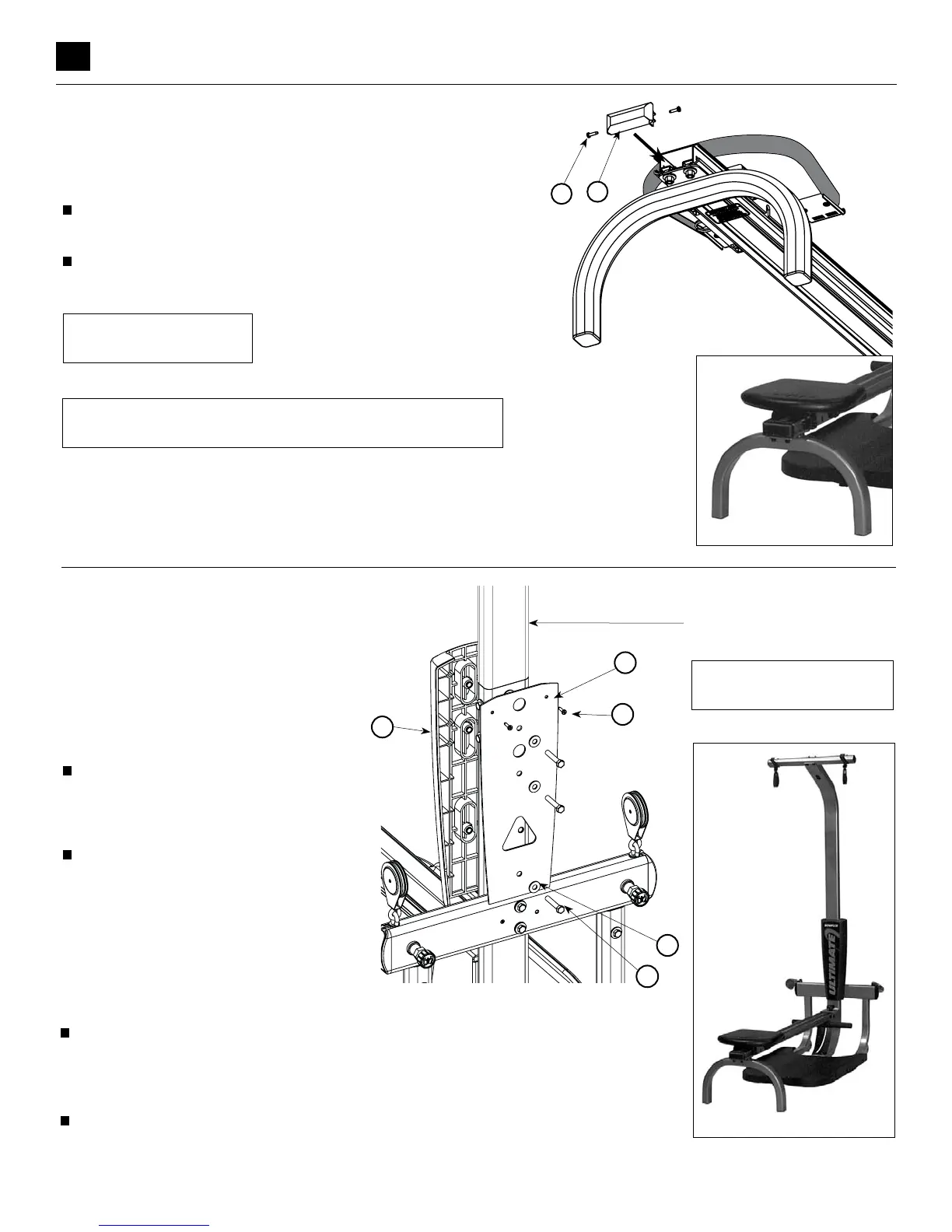 Screw the two (2) #10X3/4” (Item #44) screws into the incline bench rest