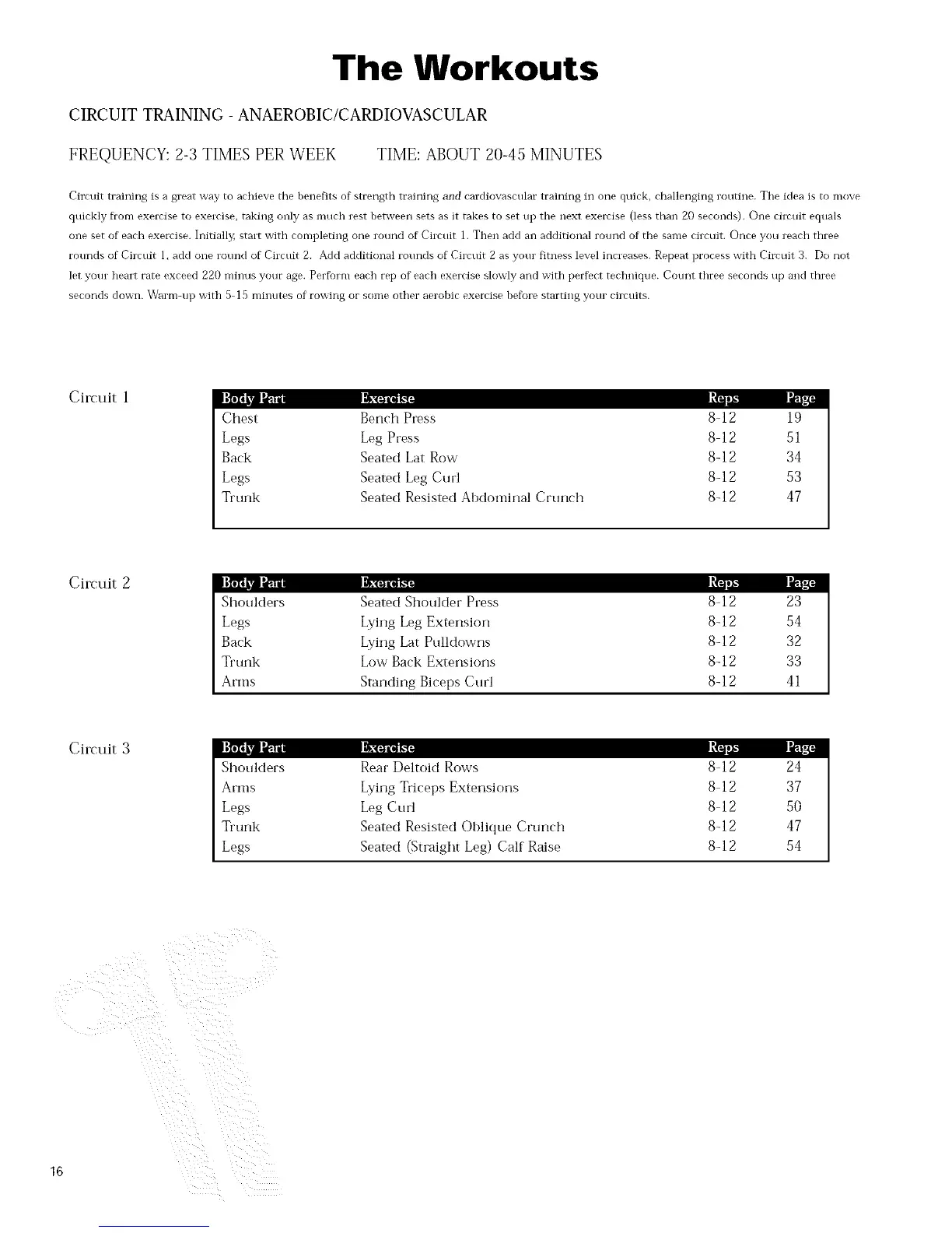seconds down. _Varm-up with 5-15 minutes of rowing or some other aerobic exercise before starting your circuits.