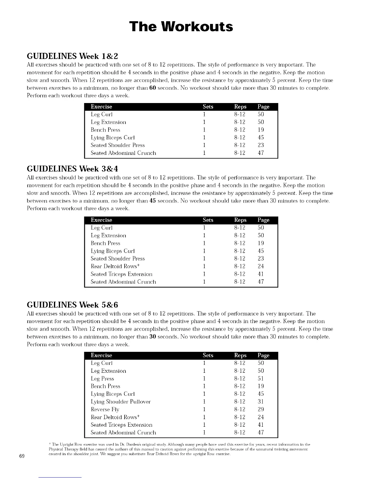 All exercises shoukt be practiced with one set of 8 to 12 repetitions. The style of perfi)rmance is very important. The