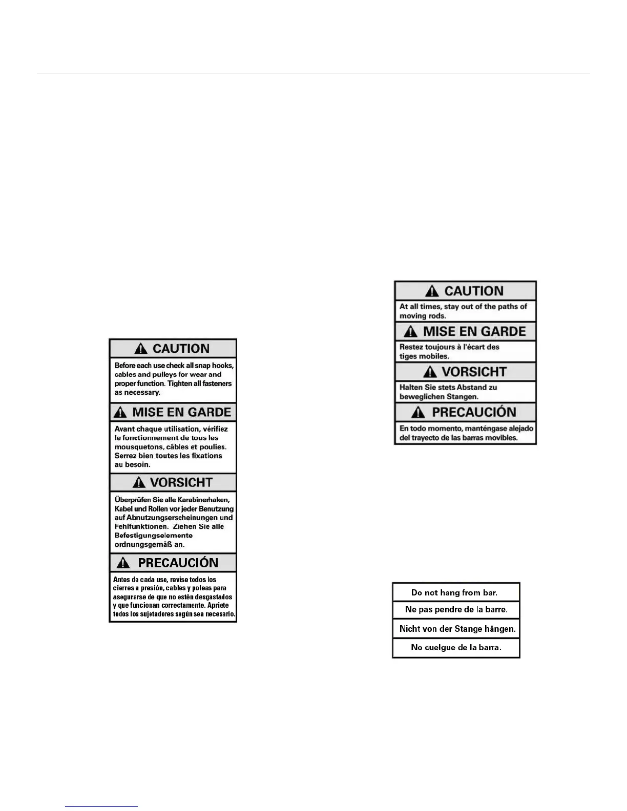 The following safety warnings are located in site specific areas on the unit. Please review and