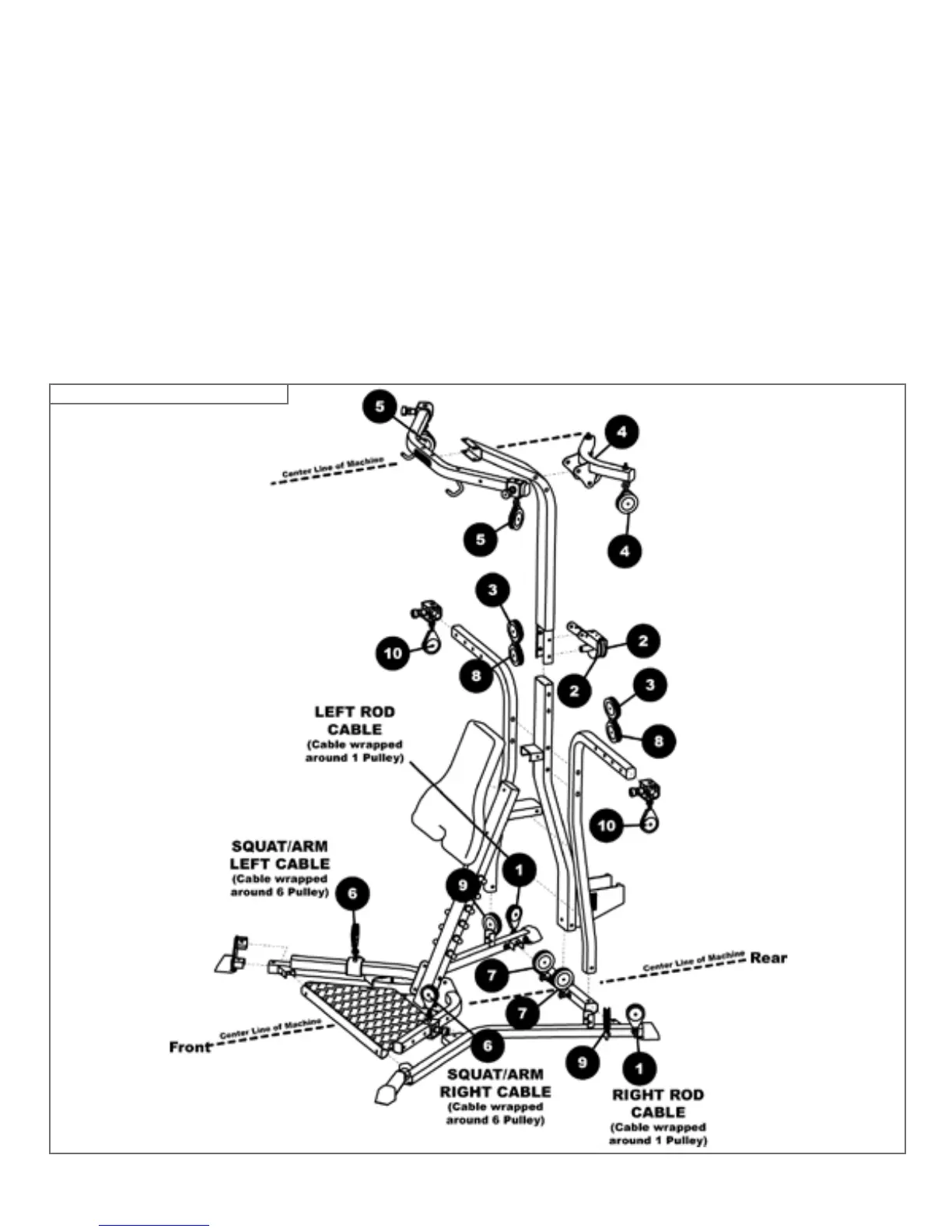 The Figure below shows all Pulleys on the Bowflex® Xtreme®2 home gym. Subsequent images illustrate how to connect
