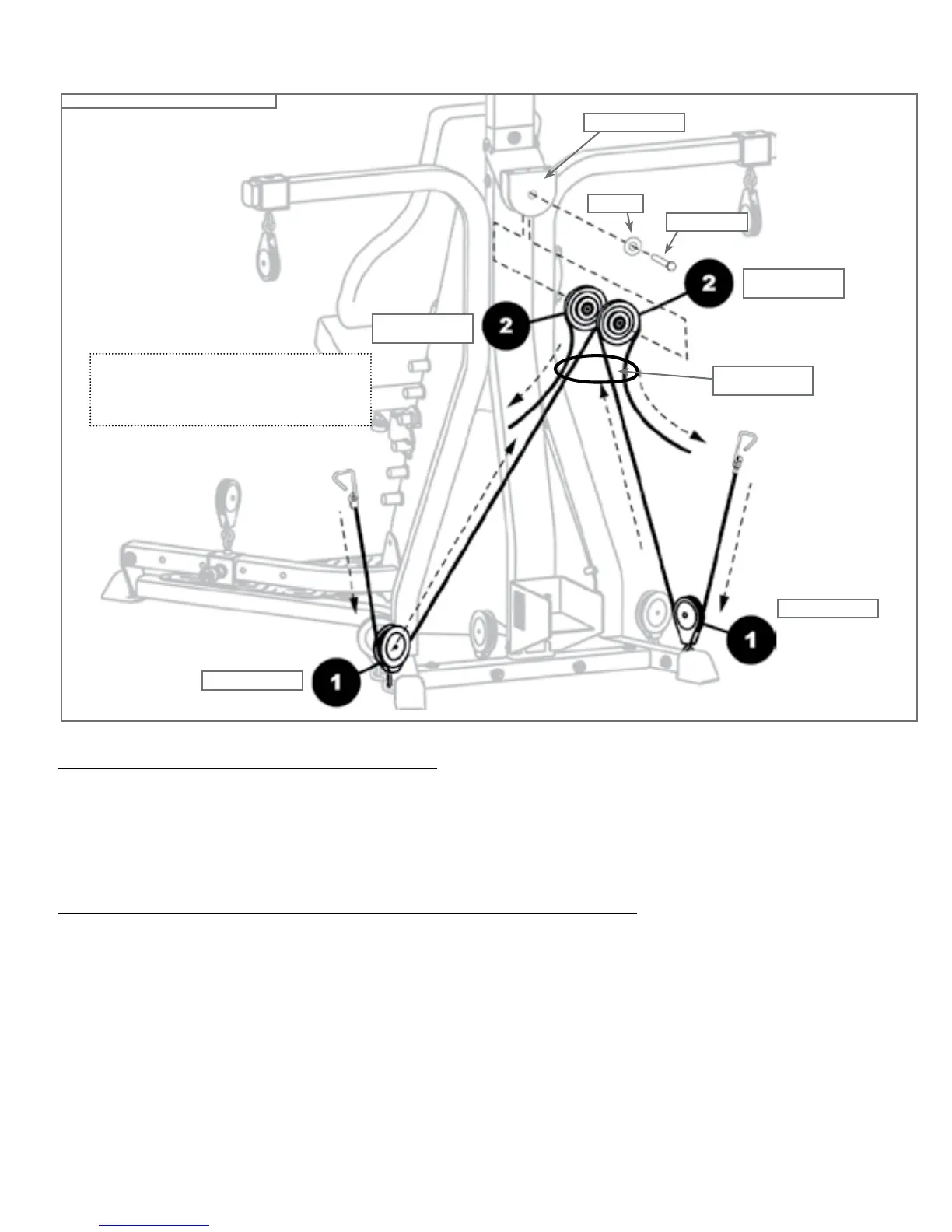 3. Unwrap the Right Pulley Cable on the Right Frame Rail. Thread that cable beneath and then over one (2) Lat Pulley