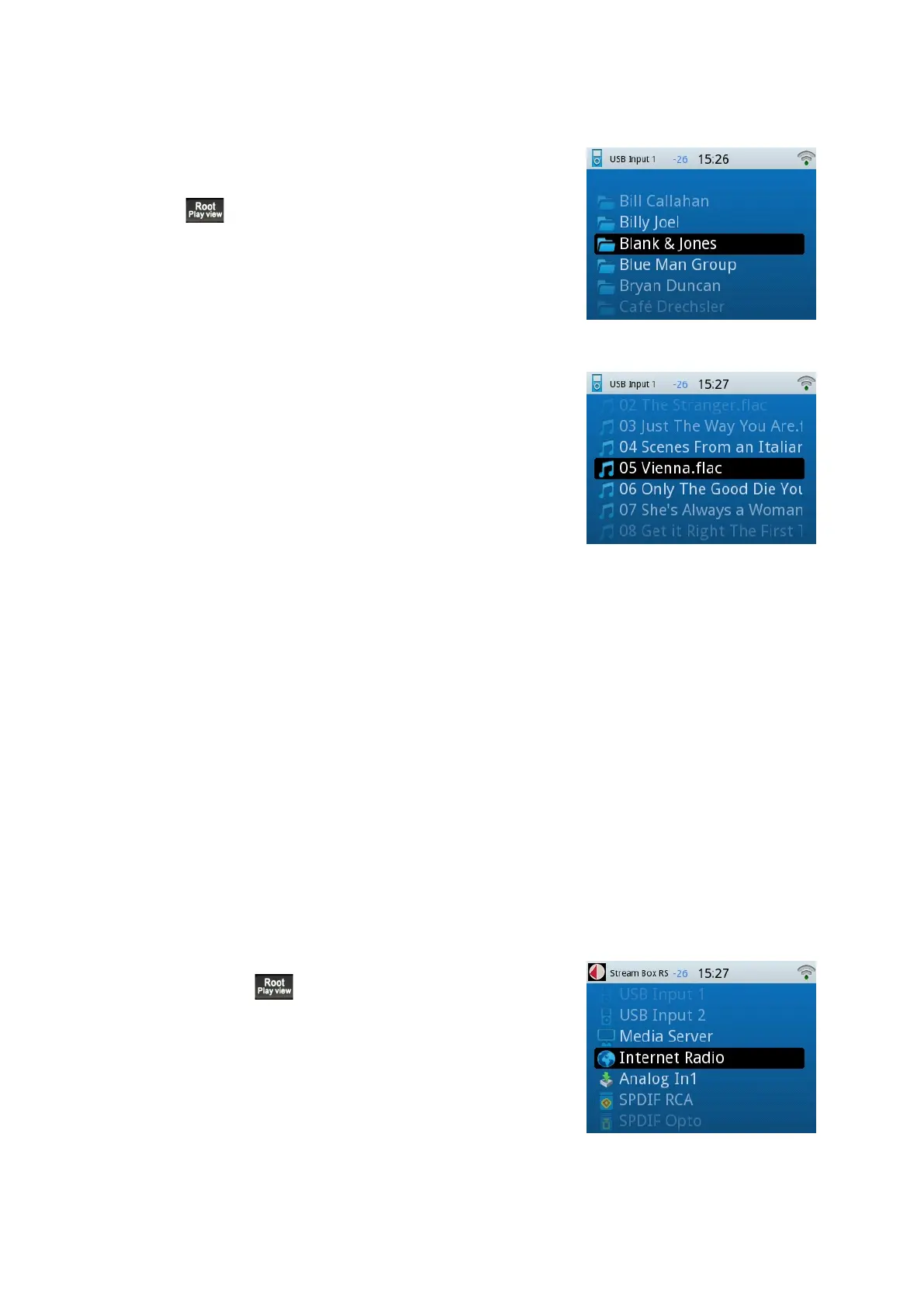 the front or back of the Stream Box RS. Then go to the root menu with a