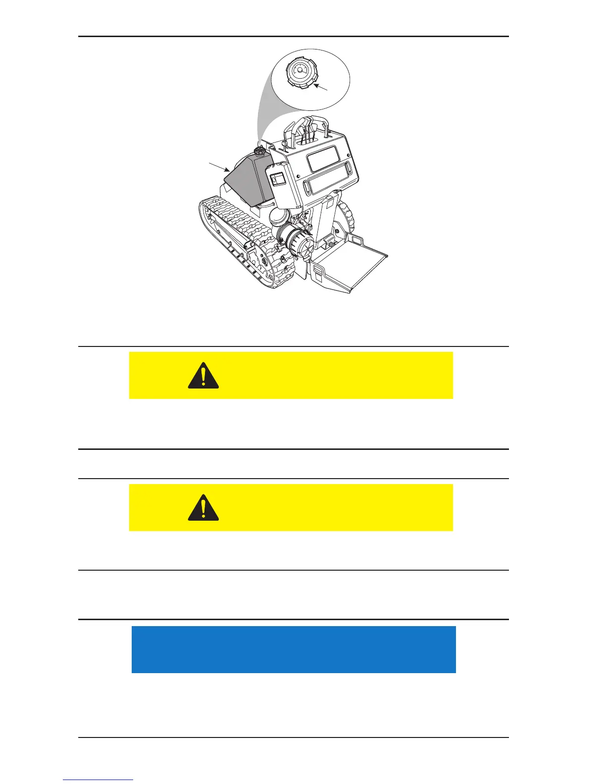 • Do not overll because fuel could spill onto hot engine parts and ignite or