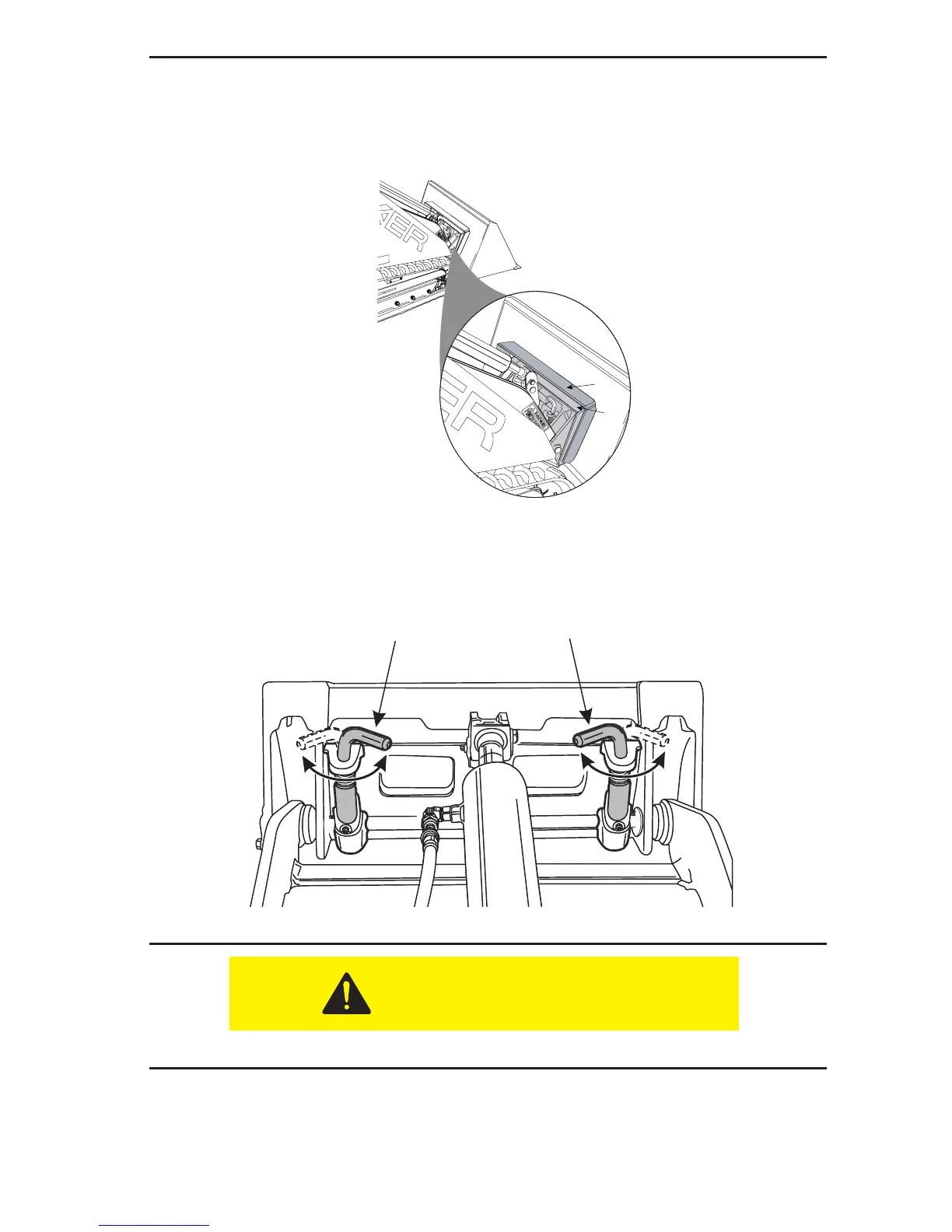 7. Start the engine and raise the attachment o the ground. Visually inspect the bottom edge