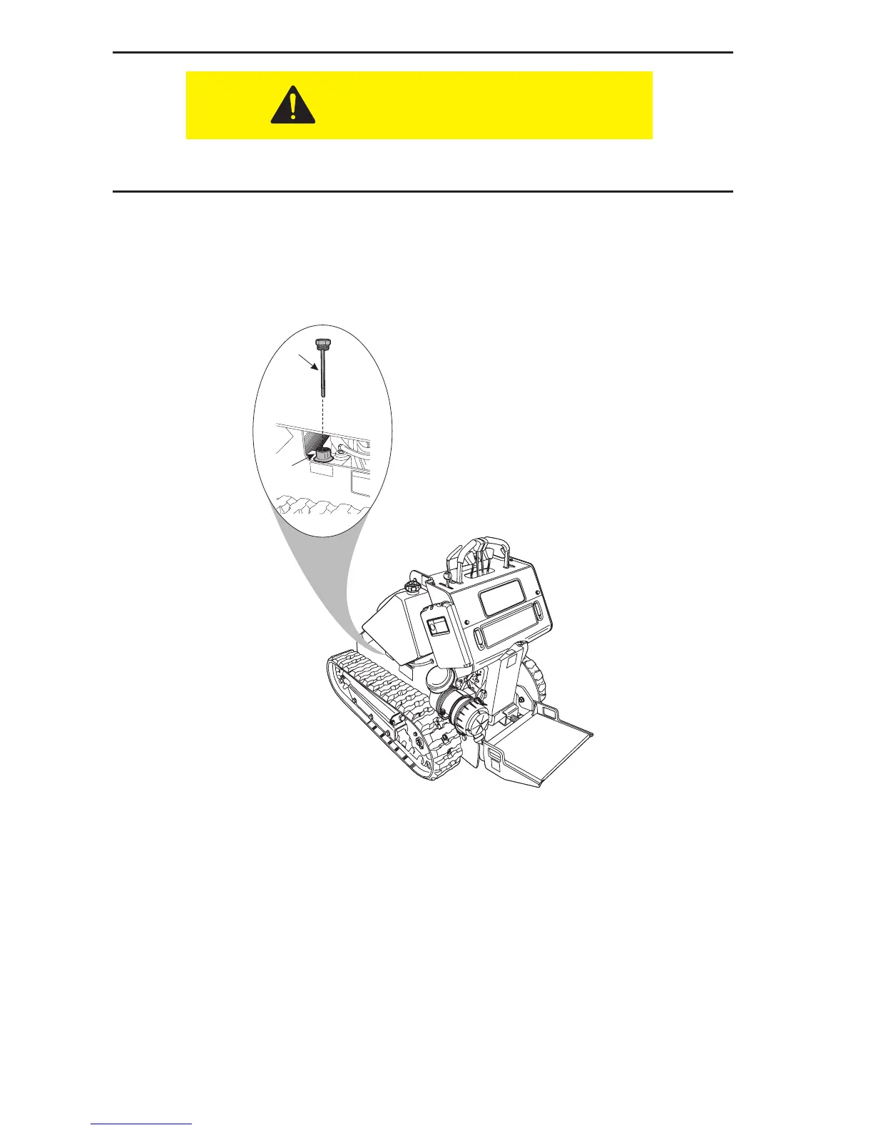 b. Make sure that the hydraulic uid is not above the upper mark when the machine is at