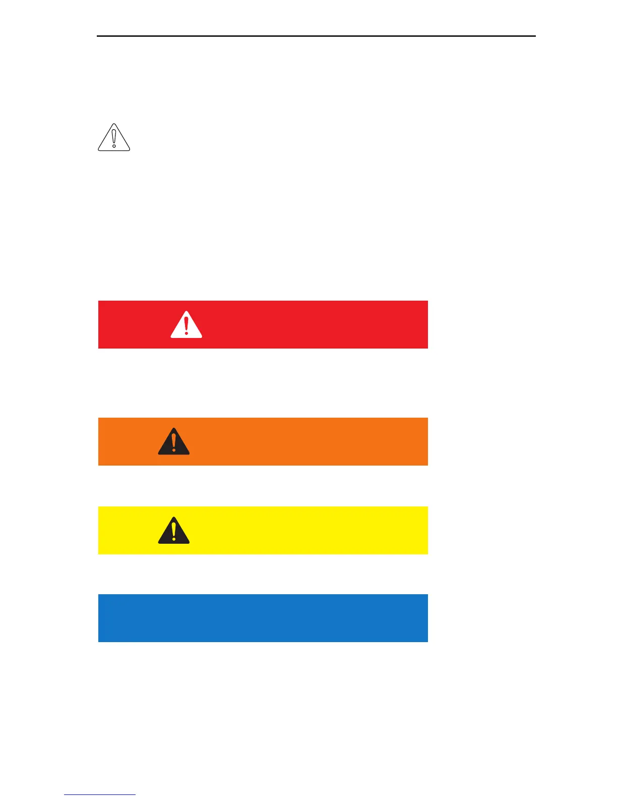 The words “DANGER”, “WARNING”, and “CAUTION” are used throughout this manual
