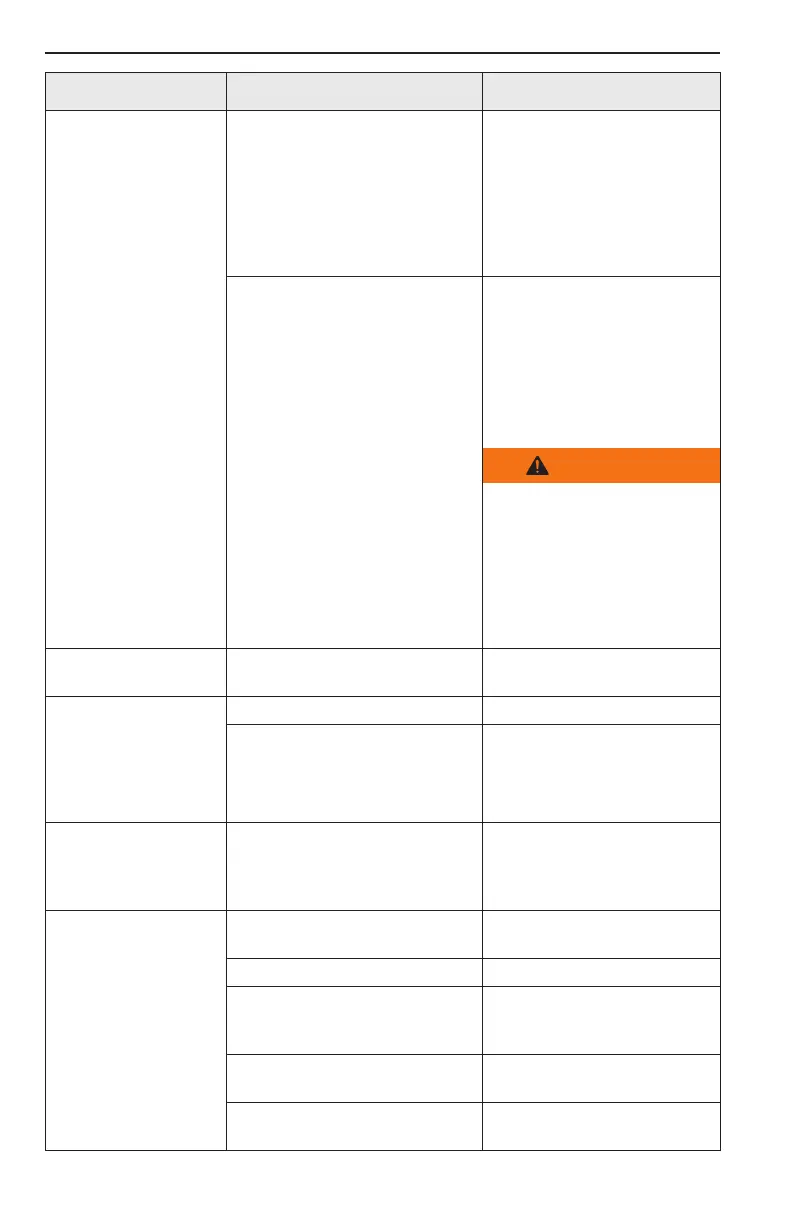 • Hydraulic uid level is low. • Check and ll the hydraulic