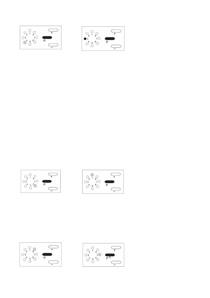 Trykk på “P”-knappen fem ganger til LED 8 blinker. Trykk på knappen “+” for å få