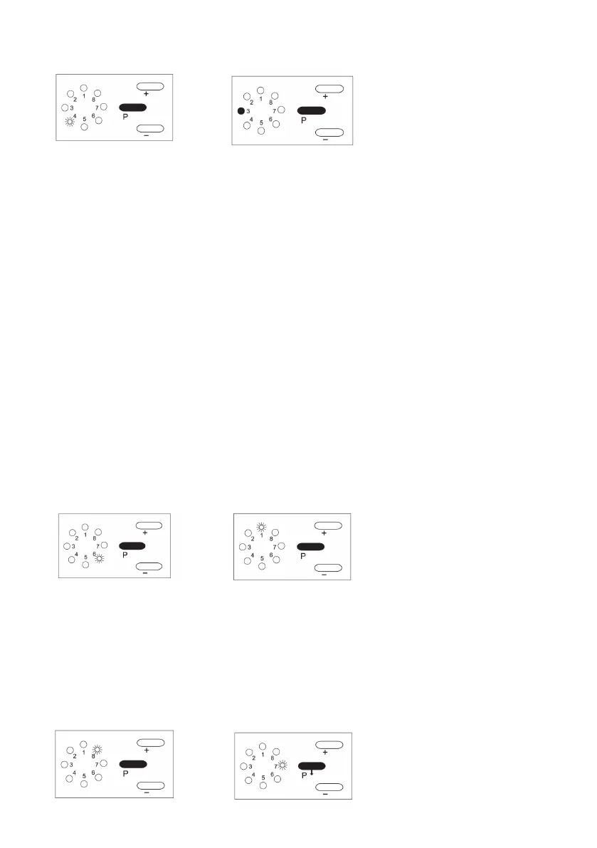 Tryk fem gange på knappen ”P”, indtil lysdiode nr. 8 blinker. Tryk på knappen ”+”