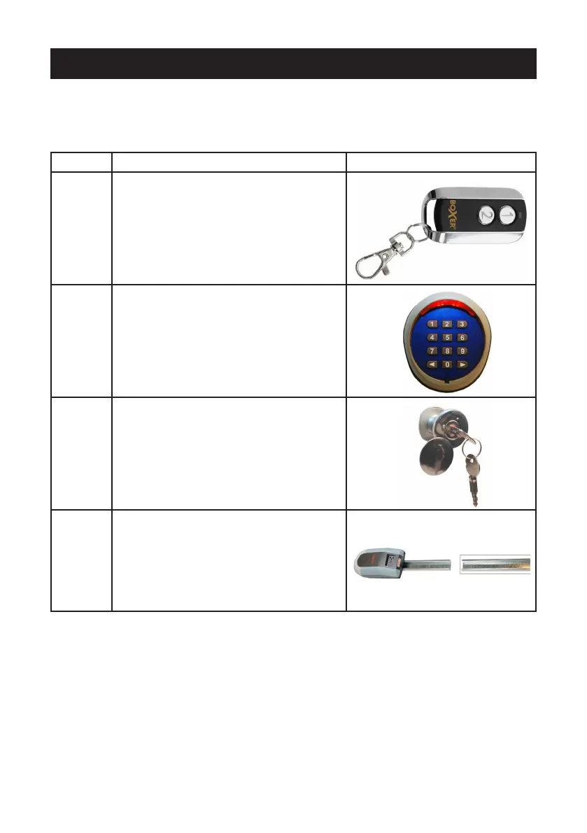 andet fjernbetjening, kodetastatur til udvendig montage, nødåbner, batteri til