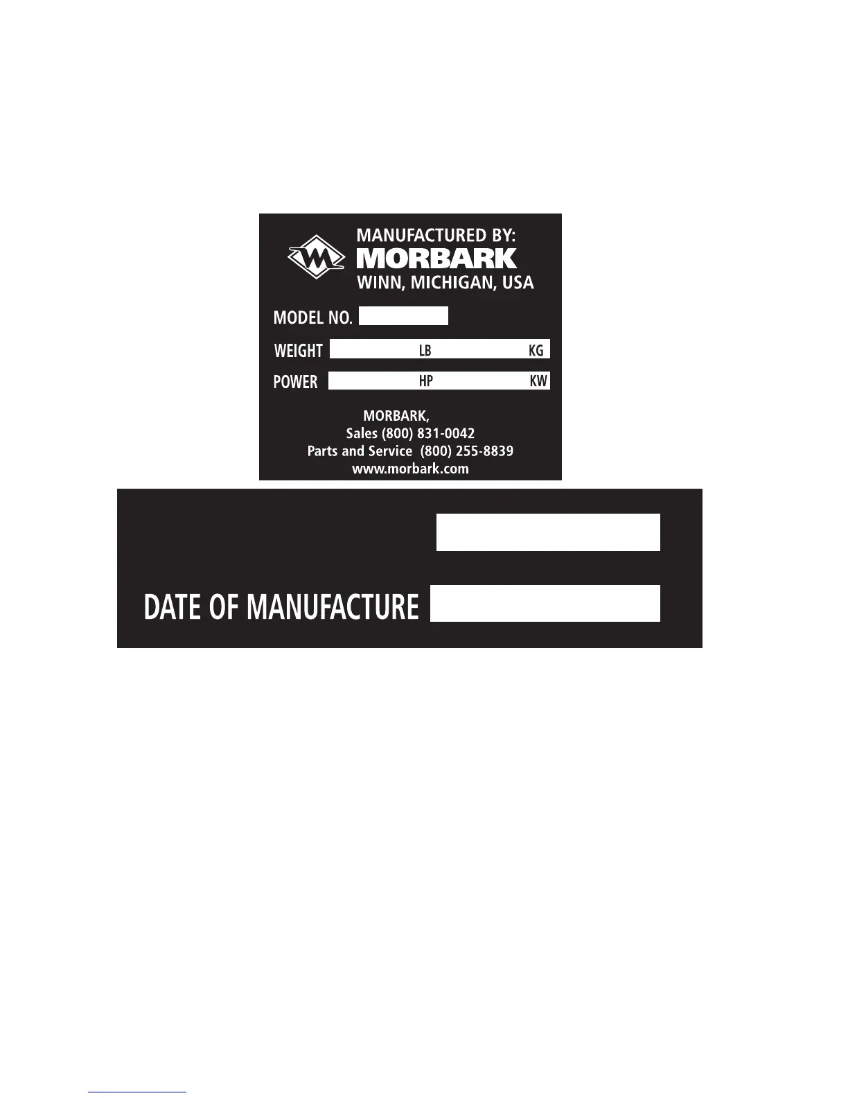 Your machine’s Model, Weight, and Power Rating along with Serial Number and Date of