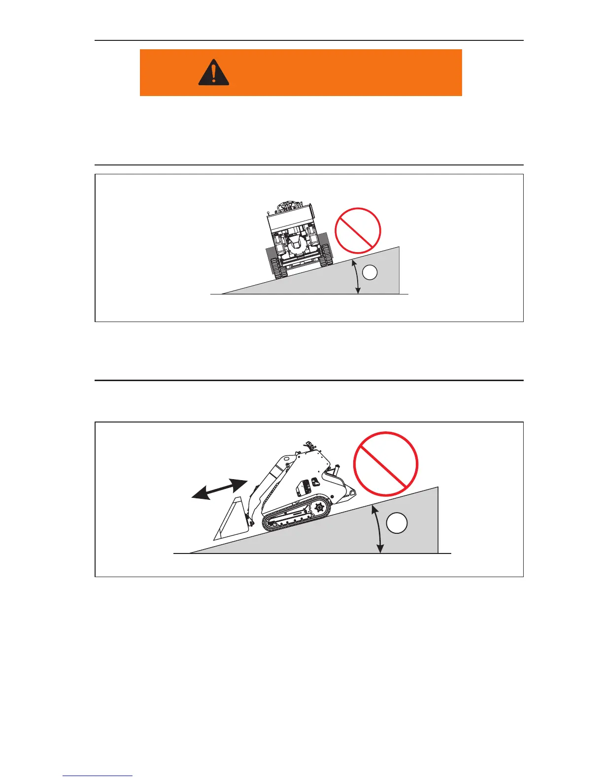 • Do not travel up or across a slope steeper than 15°. See Figure 3–23.