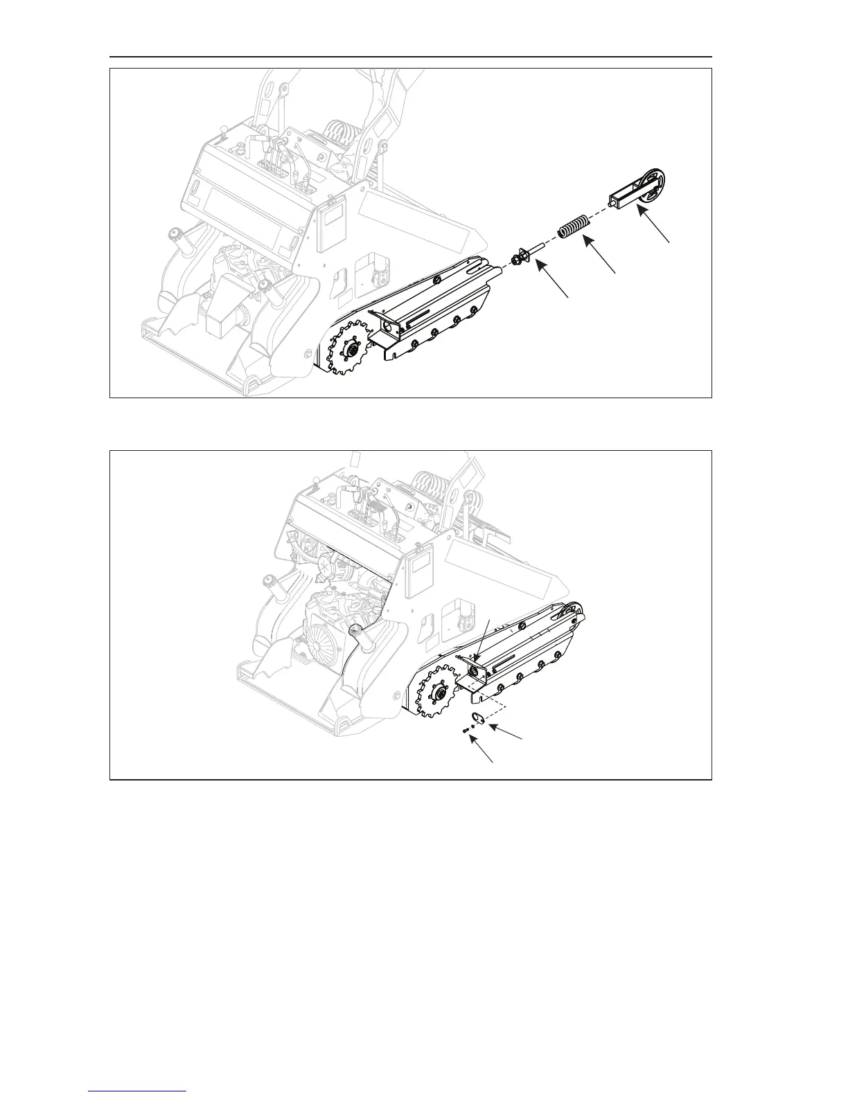 8. Remove track tension lock plate bolt (Item 1, Figure 4–28) using a 9/16” wrench