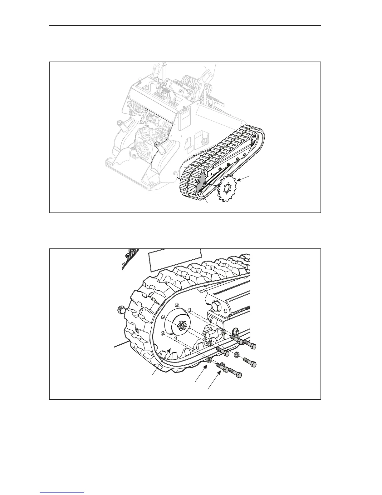 15. Rotate the drive sprocket (Item 1, Figure 4–32) and track to align the bolt holes.
