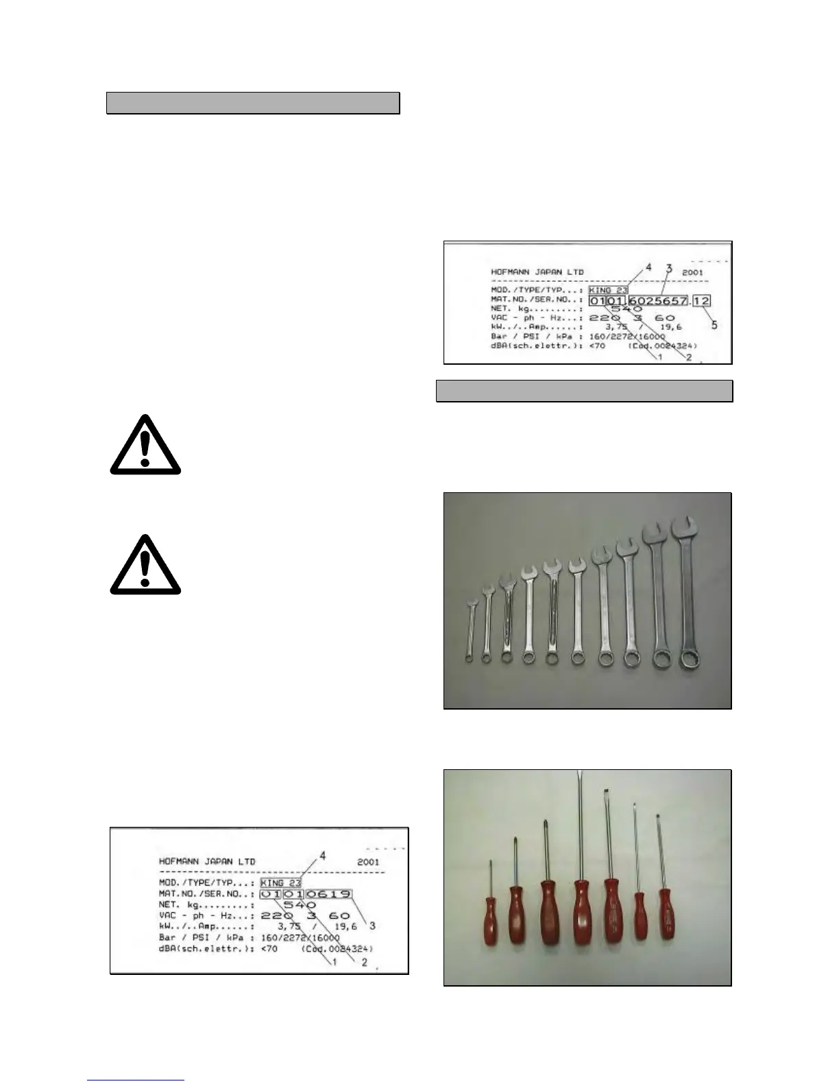 1 Set of screwdrivers (standard and cross type).