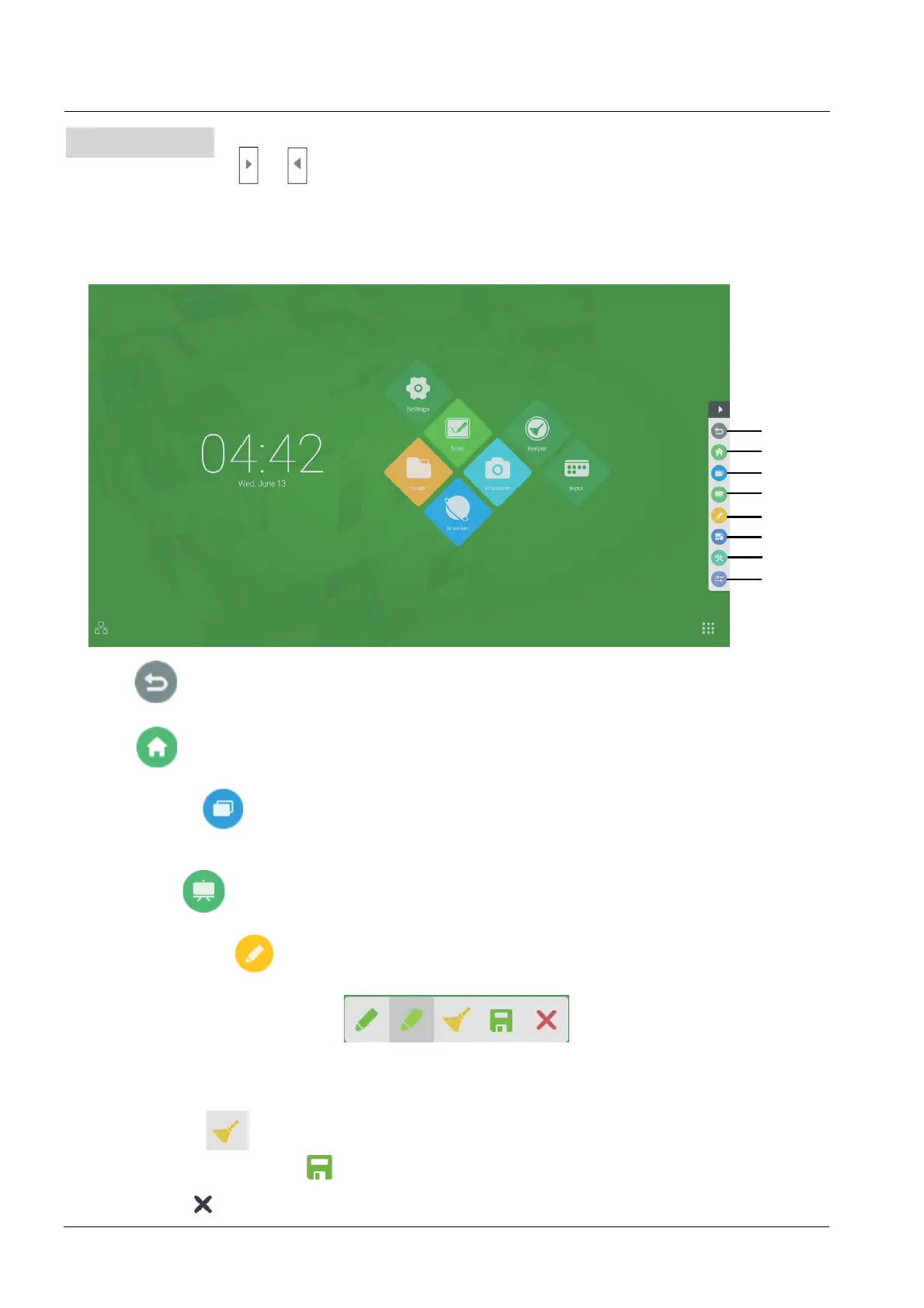 Toolbar include the Back key, Home key, recent tasks, quick whiteboard, annotation tools, screen
