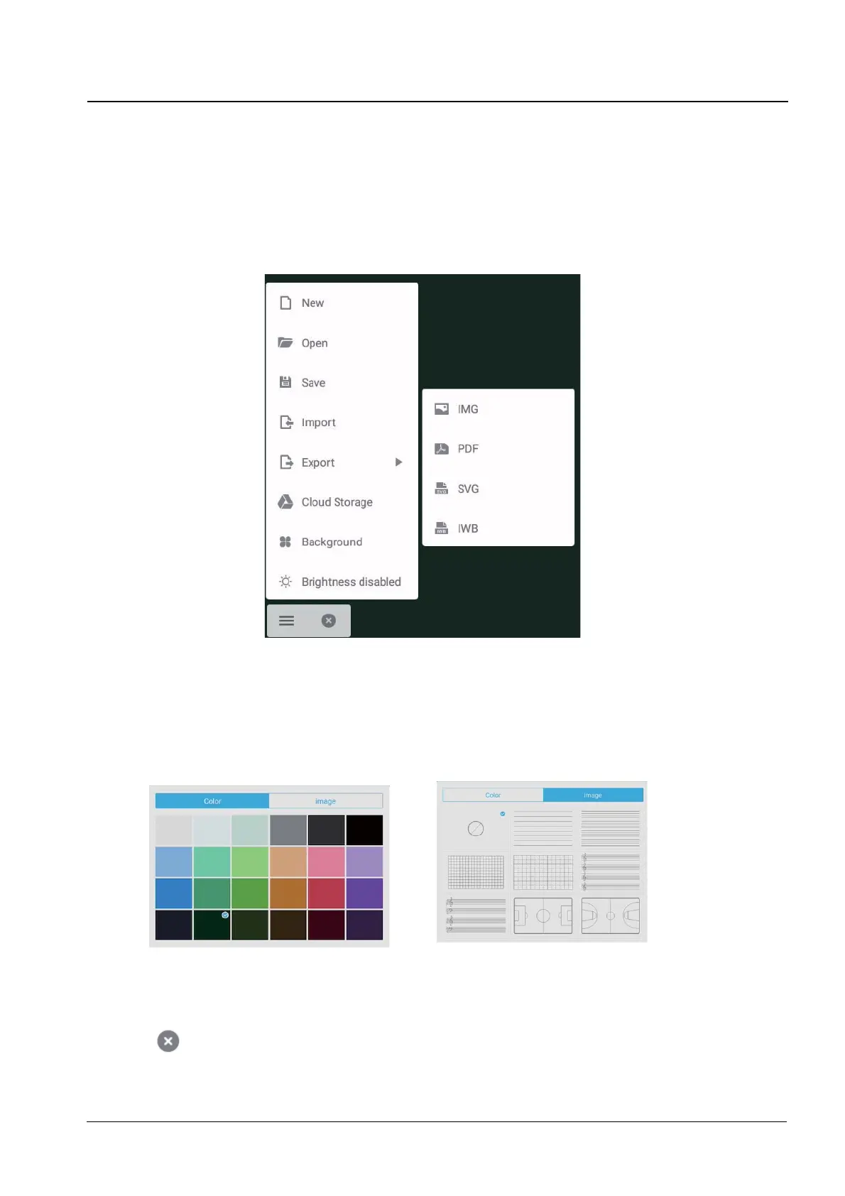 To export the current whiteboard courseware in IMG,PDF,SVG or IWB format.
