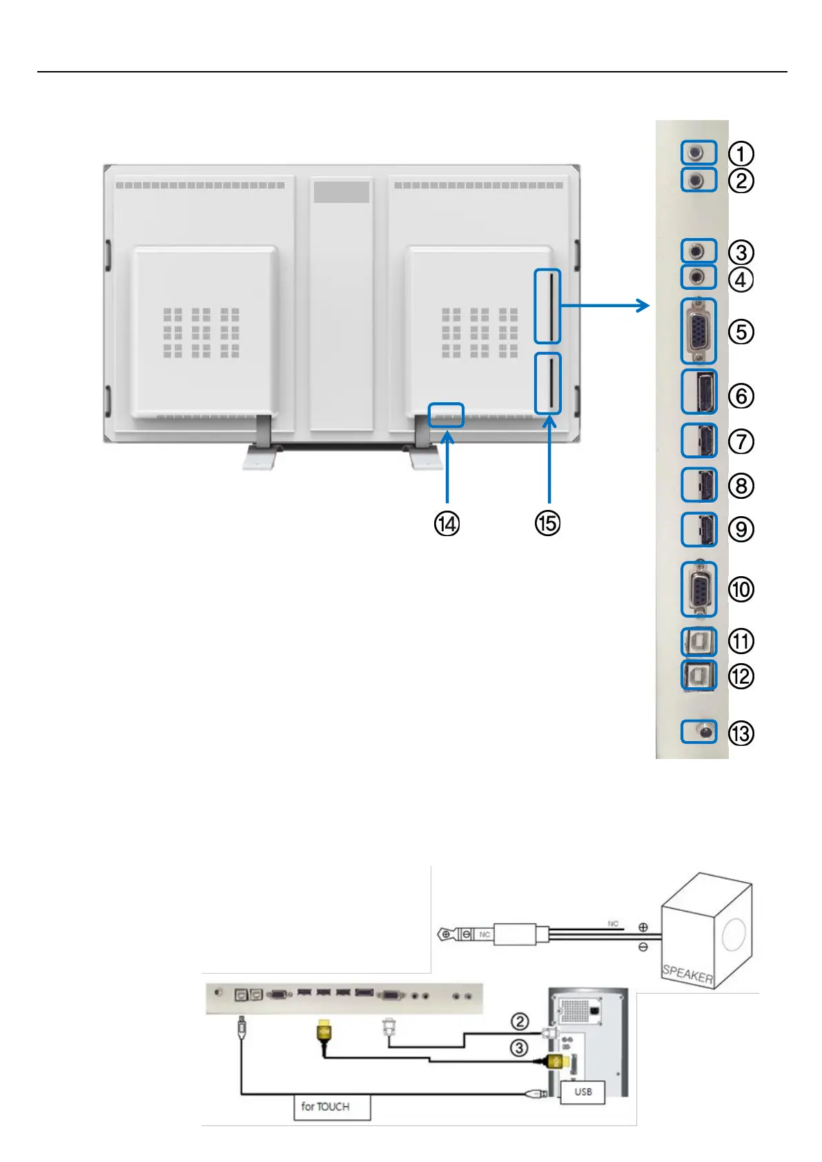 9. HDMI 1 Input 10. RS232C 11. USB (Reserve) 12. USB for Touch