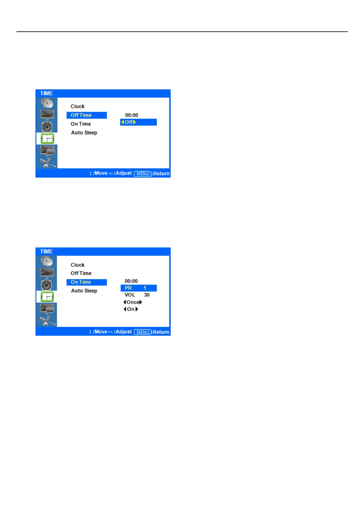 Press the ▲/▼ buttons to highlight Off Time, and