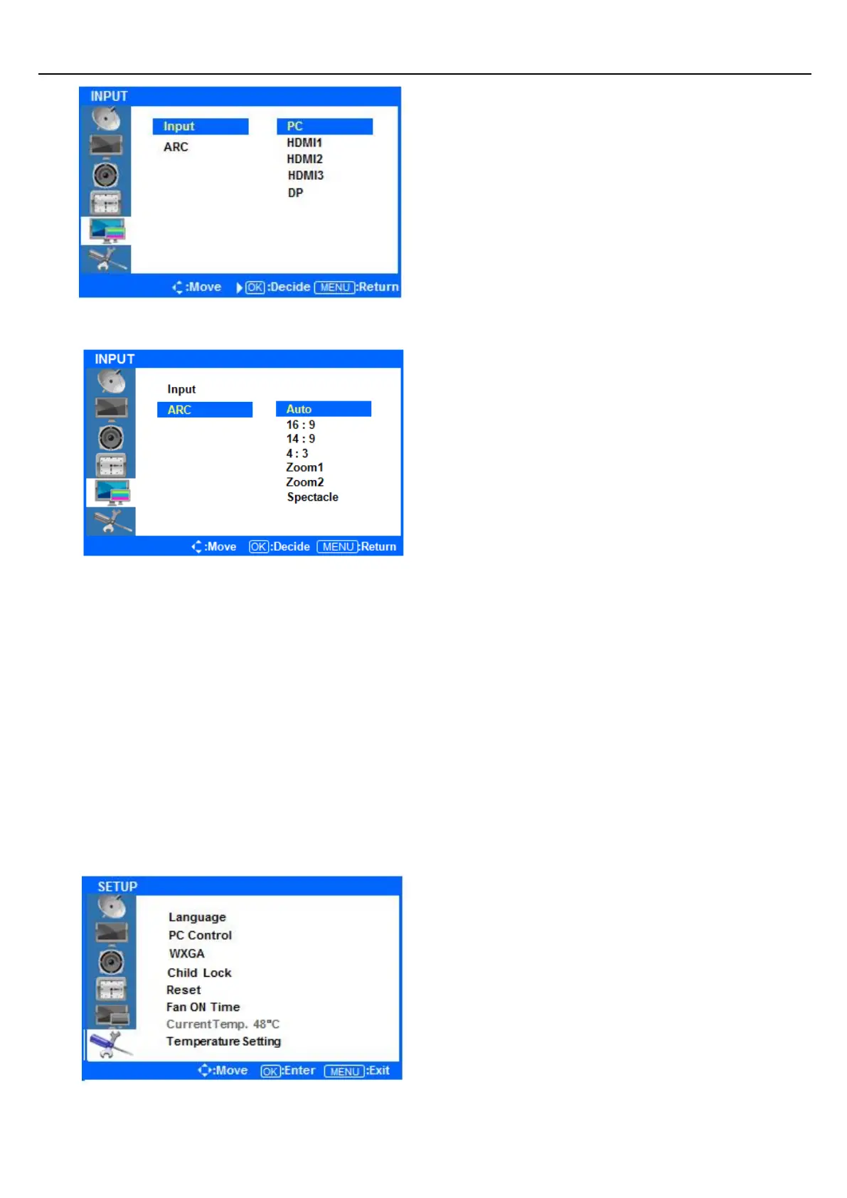 14:9/4:3/Zoom1/Zoom2/Spectacle. After highlighting