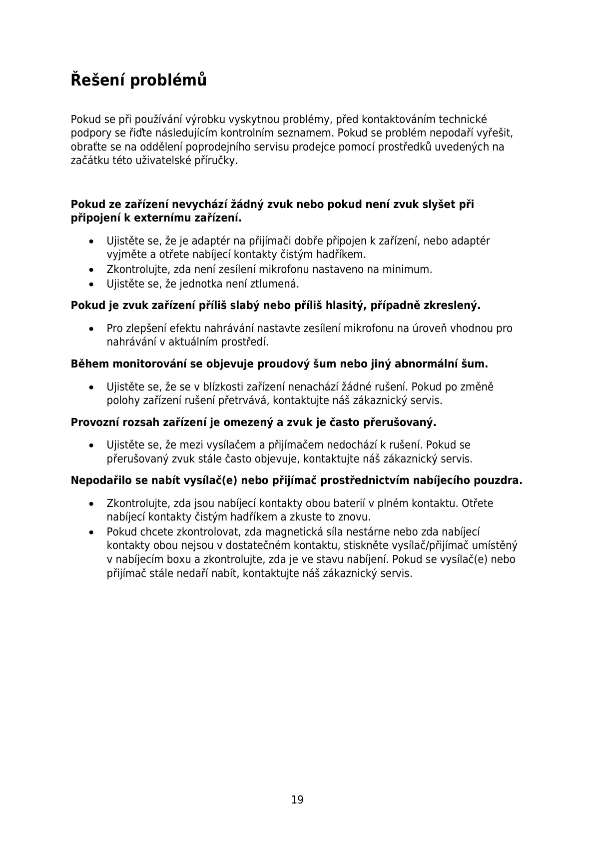 Pokud se při používání výrobku vyskytnou problémy, před kontaktováním technické