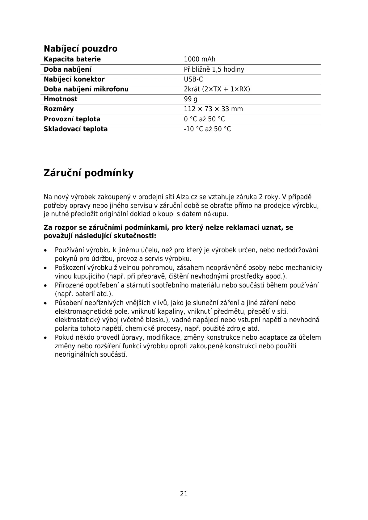 Za rozpor se záručními podmínkami, pro který nelze reklamaci uznat, se