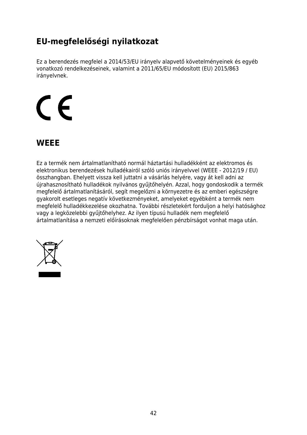 Ez a termék nem ártalmatlanítható normál háztartási hulladékként az elektromos és