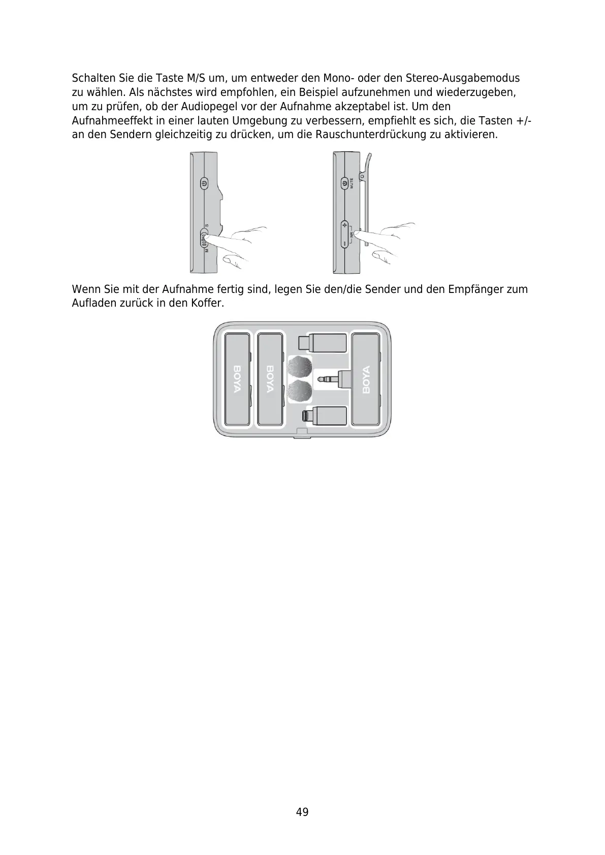 Schalten Sie die Taste M/S um, um entweder den Mono- oder den Stereo-Ausgabemodus