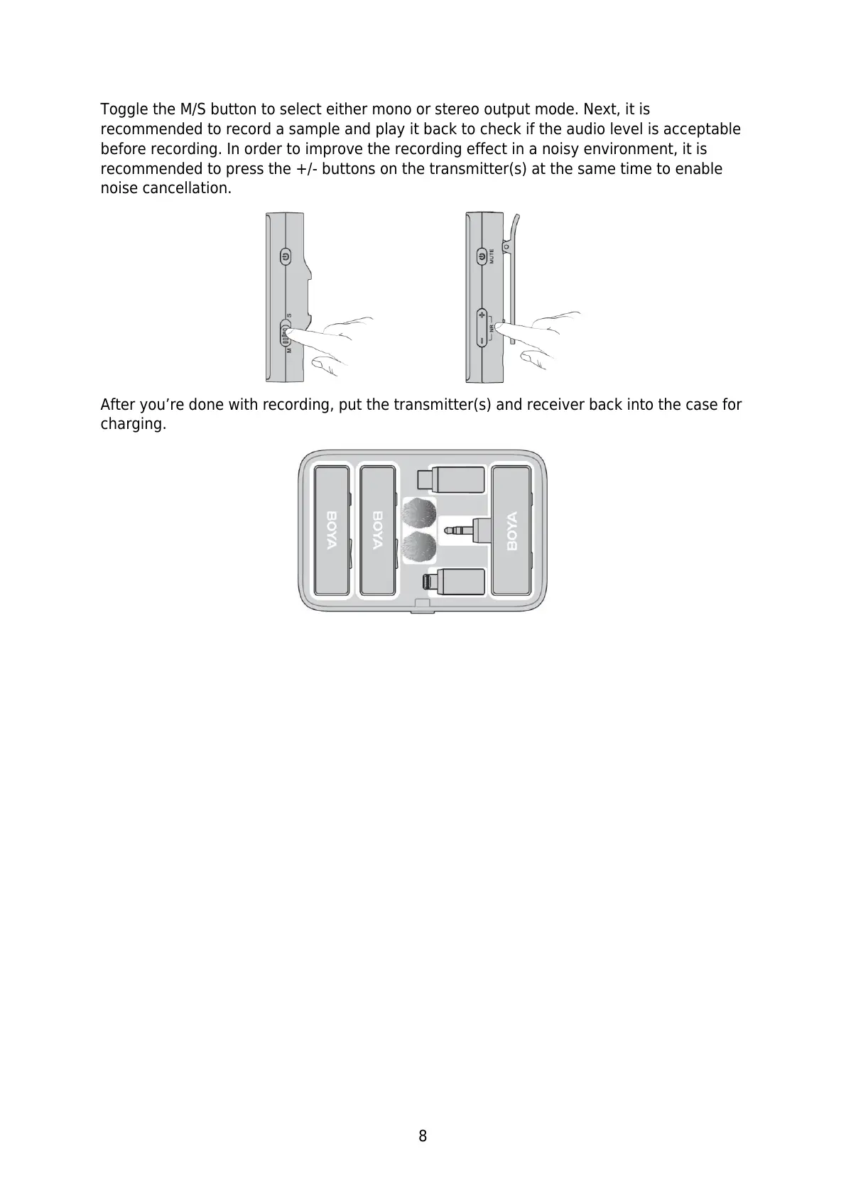After you’re done with recording, put the transmitter(s) and receiver back into the case for