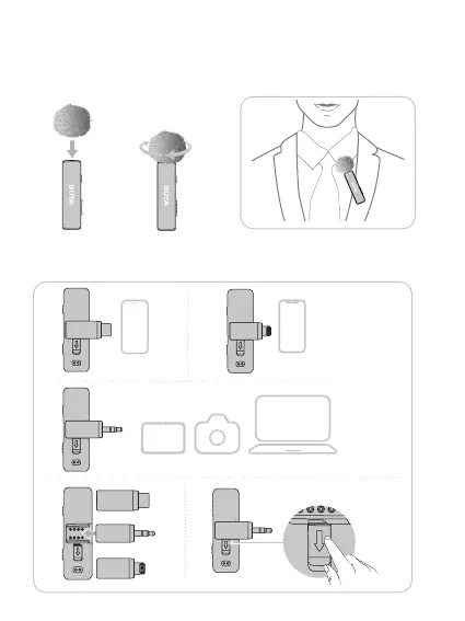 2. 选择适配的转接头安装到接收器的凹槽,然后连接至相机、手机