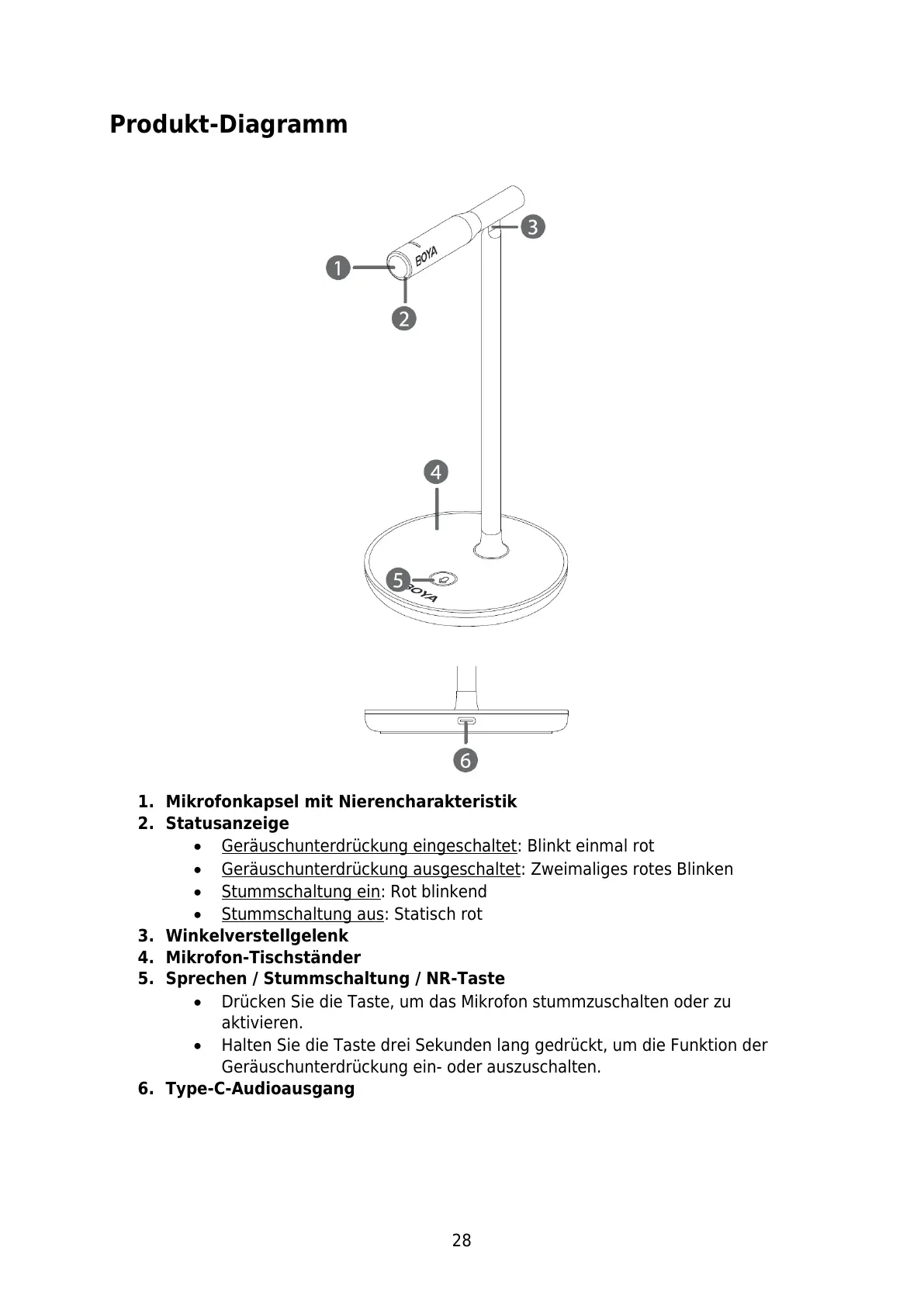 Drücken Sie die Taste, um das Mikrofon stummzuschalten oder zu