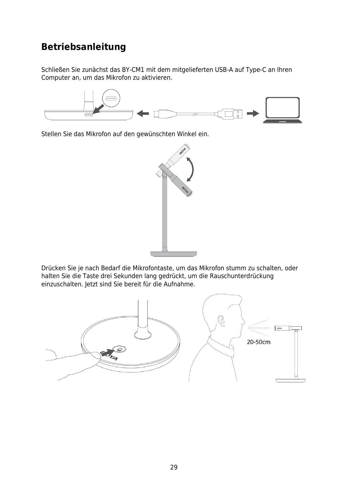 Schließen Sie zunächst das BY-CM1 mit dem mitgelieferten USB-A auf Type-C an Ihren