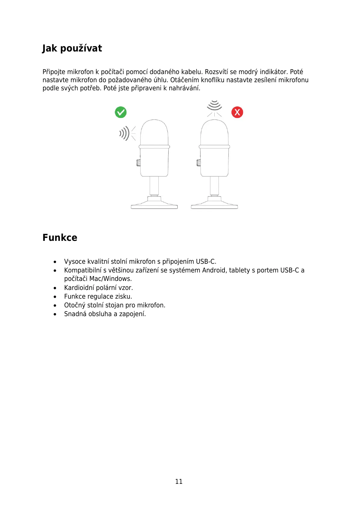 nastavte mikrofon do požadovaného úhlu. Otáčením knoflíku nastavte zesílení mikrofonu