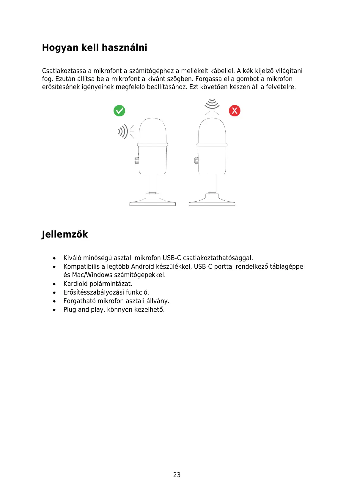 Kiváló minőségű asztali mikrofon USB-C csatlakoztathatósággal.