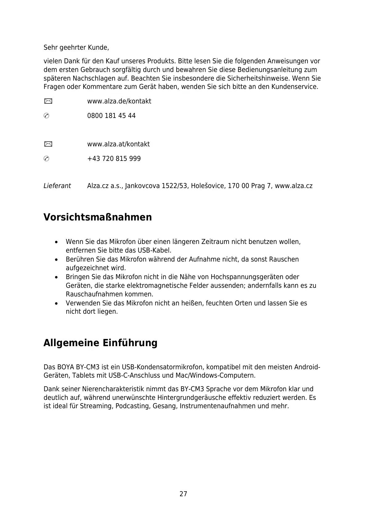Lieferant Alza.cz a.s., Jankovcova 1522/53, Holešovice, 170 00 Prag 7, www.alza.cz