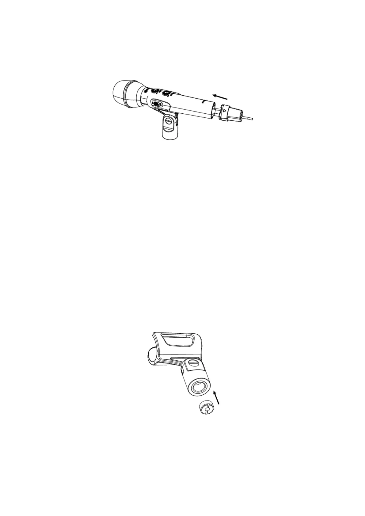 1. Zašroubujte šroub 3/8 ”do úchytu 5/8” ve spodní části držáku mikrofonu.
