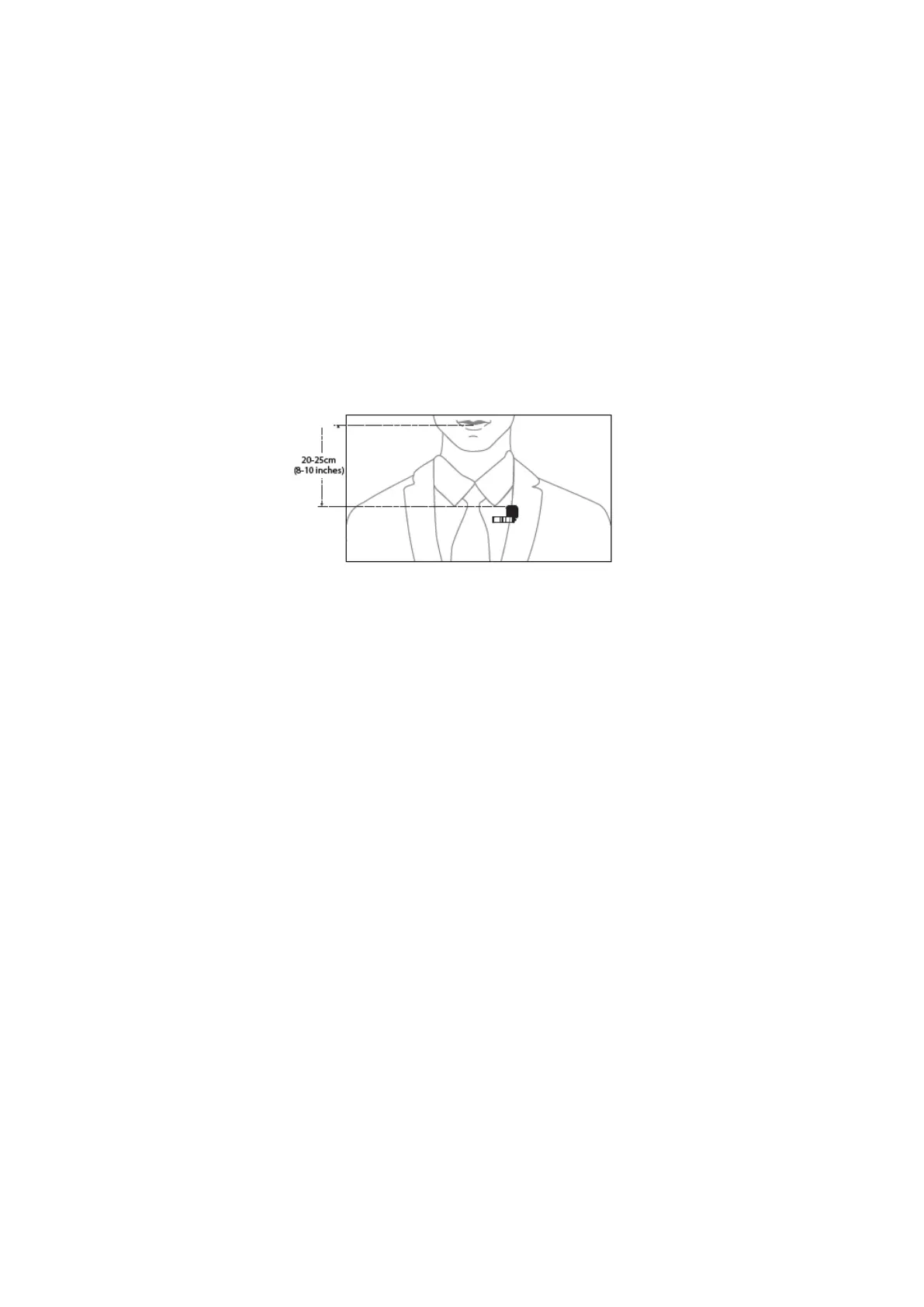 Attach the microphone to the front of your clothing with the clothing clip, about 20-25