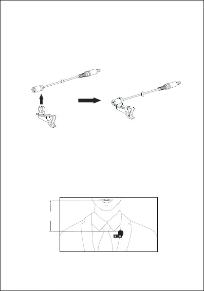 • Attach the microphone to the front of your clothing with the