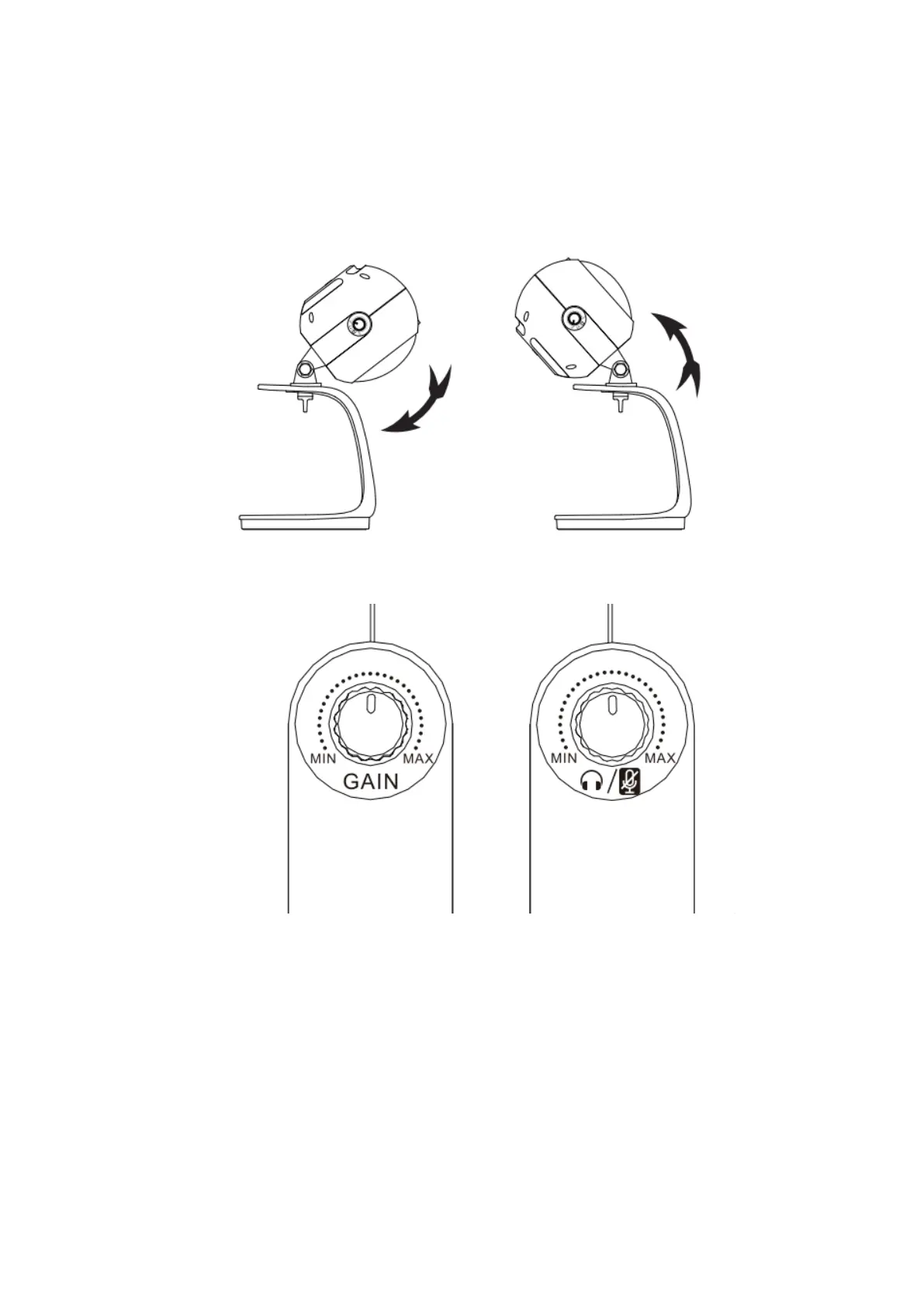 1. Loosen the locking knob, adjust the microphone at the desired angle, then tighten