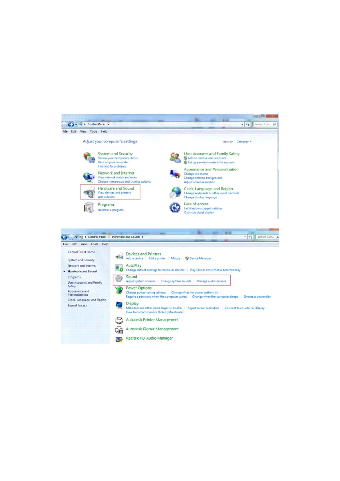 3. A “Vezérlőpanelben” válassza a “Hardver- és Hangbeállításokat