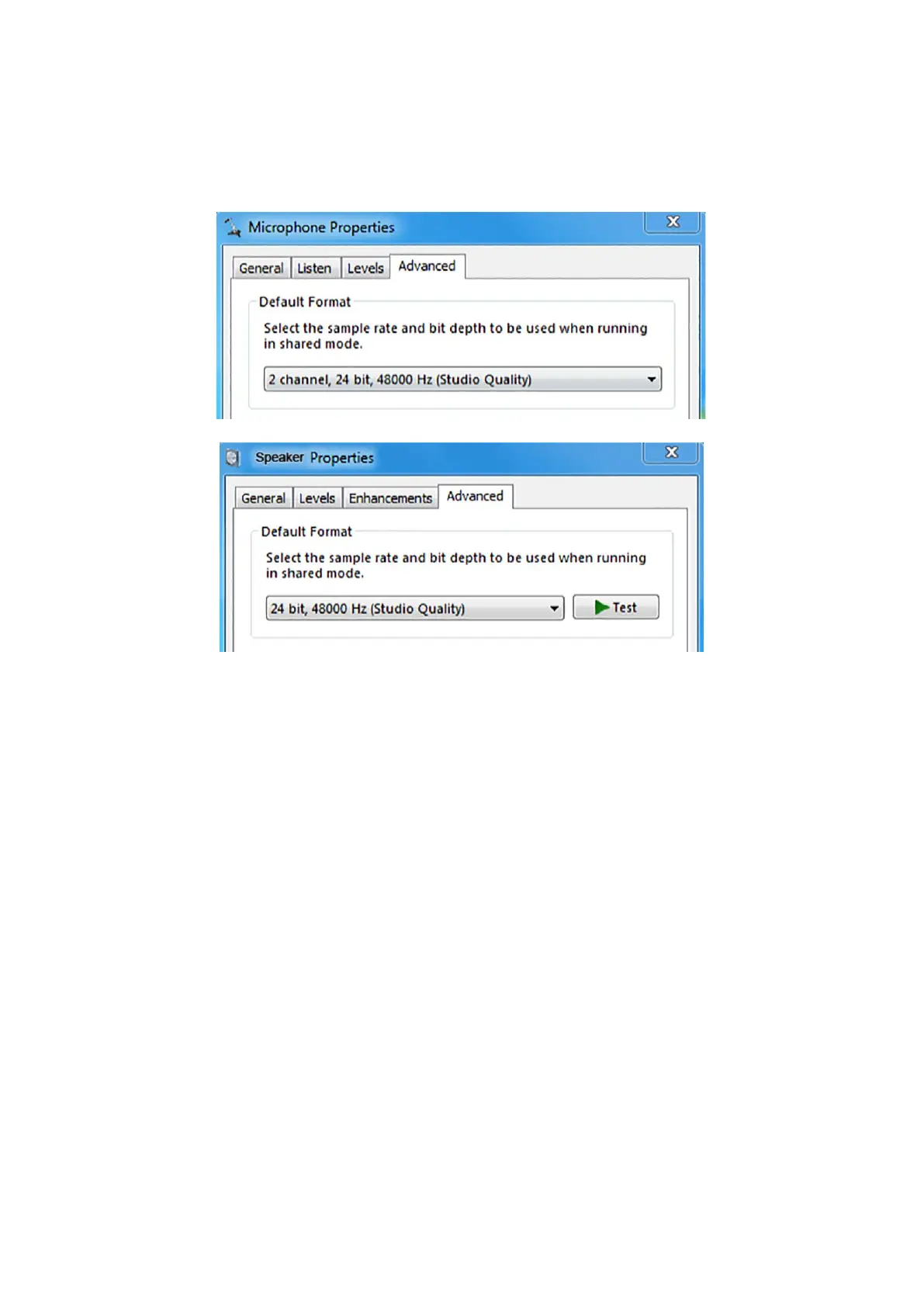 Ügyeljen rá, hogy mind a mikrofon, mind a "24 bit, 48000 Hz (Studio Quality)"-ra legyen