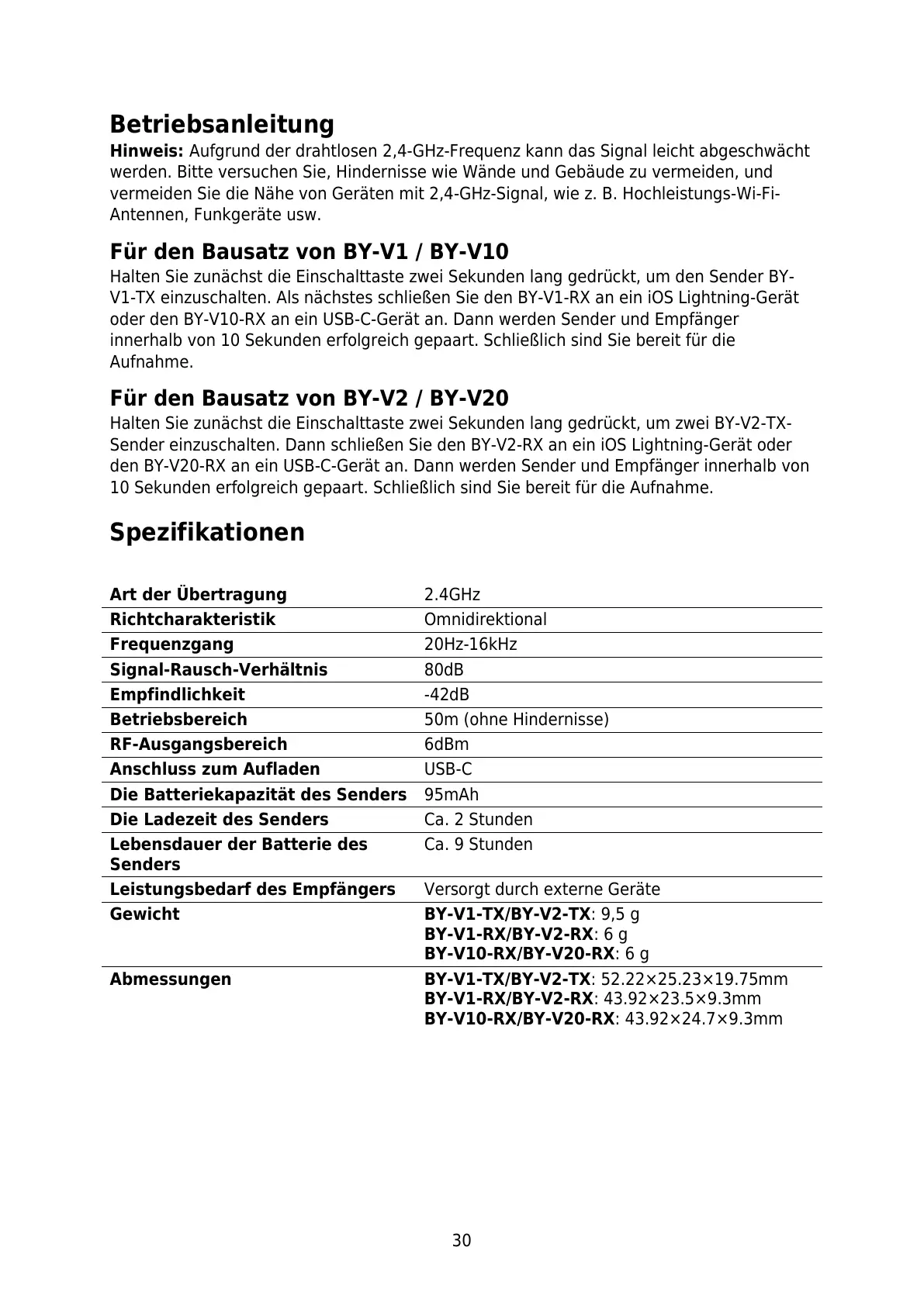 oder den BY-V10-RX an ein USB-C-Gerät an. Dann werden Sender und Empfänger