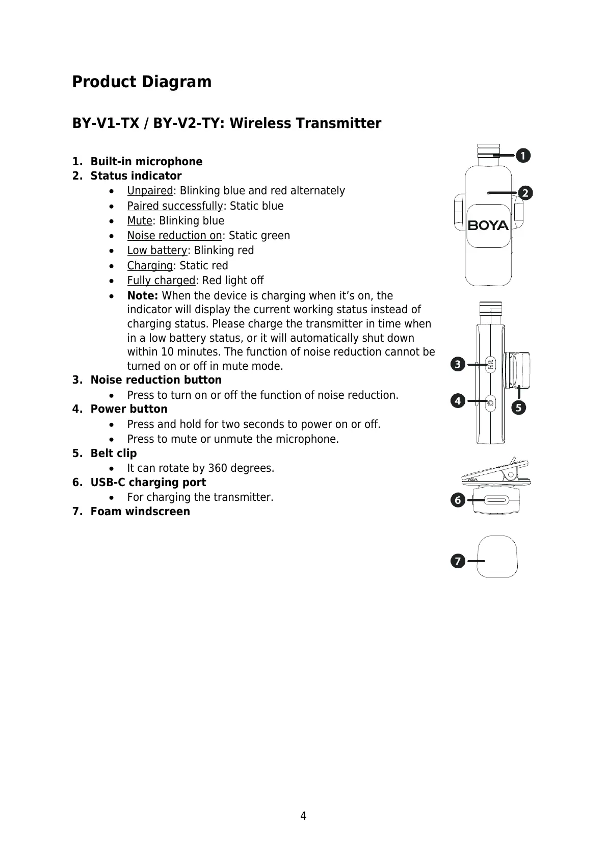 charging status. Please charge the transmitter in time when
