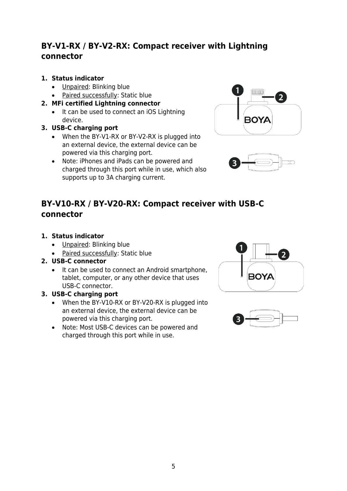 BY-V10-RX / BY-V20-RX: Compact receiver with USB-C
